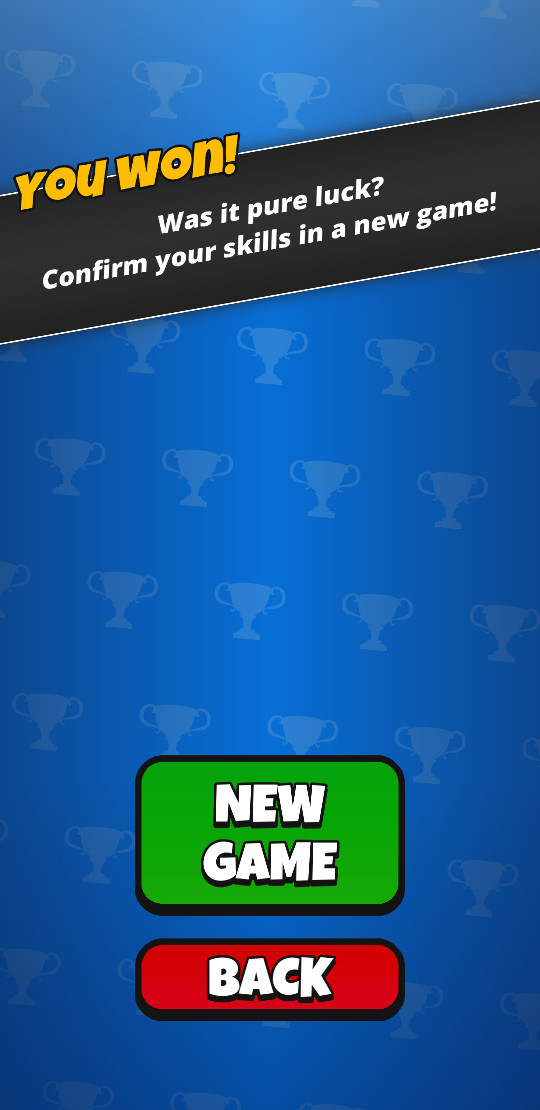 When the fight is over we end up on the end-game screen from which we can start another game or go back to the main screen.