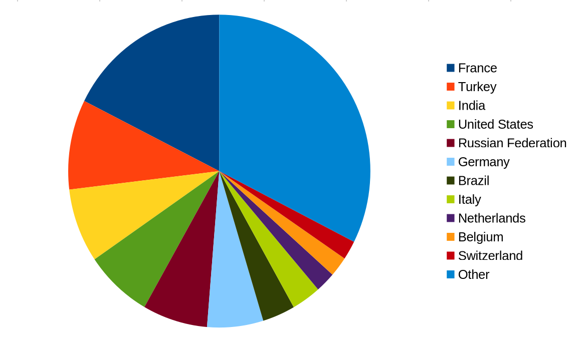 Le duel est donc loin devant. Enfin, pour conclure, voici la répartition géographique des joueurs (modulo l’état de ma base de géolocalisation d’IP) :