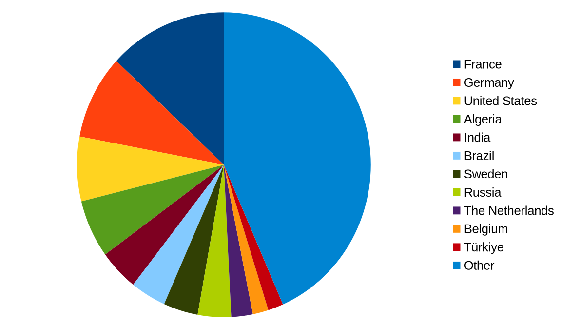 Enfin, pour la répartition des joueurs par pays, avec la précision de la table fournie par MaxMind, on a :