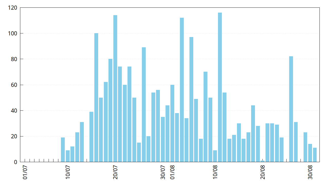 Comme d’habitude je vais terminer avec quelques stats sur la fréquentation du jeu. Commençons par l’évolution du nombre de recherches d’adversaire sur les deux derniers mois.