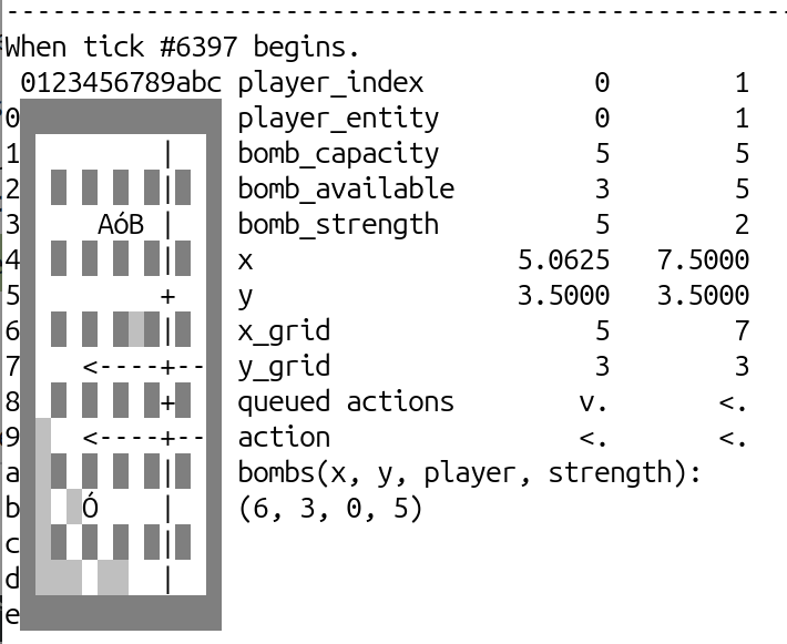 C’est d’ailleurs ce qui m’a amené à écrire bim-player. À un moment il faut pouvoir dérouler les parties doucement afin de bien comprendre ce qu’il se passe. Et ça a marché dès le début ! Dès que j’ai pu voir une partie avec bim-player j’ai immédiatement vu un bug. Un bug tellement bête…