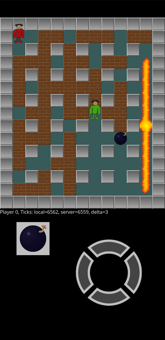 Vous l’aurez peut-être remarqué mais le jeu se déroule sur une grille. Les obstacles, les bombes, les murs, tout est placé sur une seule case. Pour le joueur c’est pareil, bien qu’il se déplace progressivement d’une case à l’autre et semble ainsi être à cheval entre deux cases, d’un point de vue logique il n’occupe toujours qu’une seule case. Or il y a longtemps je me suis dit que ce serait une bonne idée que le joueur soit considéré dans la case voisine quand il est au bord de la case courante. Ça éviterait des cas où il aurait l’air d’être touché par des flammes alors qu’il apparaîtrait visuellement plutôt en dehors.