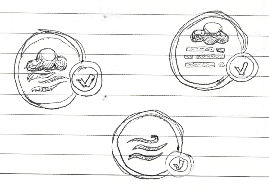 Reste à faire une illustration pour le bouton qui permet d’activer cette fonctionnalité depuis la recherche d’adversaire. On refait un petit tour dans le carnet de croquis pour essayer de choper une idée.