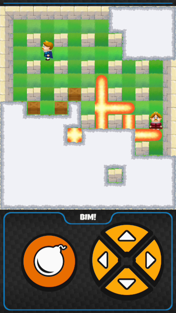 J’aime beaucoup ce mode de jeu et cela pour plusieurs raisons. Déjà, pour autant que je sache, c’est un mode de jeu qu’on ne trouve pas dans les jeux Bomberman ni ses clones, ce qui rend mon jeu un peu original. Idéalement j’aimerais bien m’éloigner de ces inspirations sur la durée pour aller vers quelque chose d’unique, et pour le coup cela s’inscrit bien dans cette démarche. D’autre part c’est un mode de jeu auquel je croyais peu au début et qui s’est avéré hyper marrant en pratique. Clique sur l’image pour voir une vidéo.
